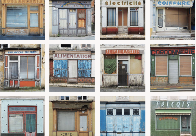Depuis 2014, Franck Delautre sillonne la France à vélo, appareil au poing, pour immortaliser les dernières vitrines orphelines du XXe siècle : les vitrines fanées, les devantures muettes, les commerces abandonnés, devantures de petits commerces abandonnés, souvent depuis des décennies.