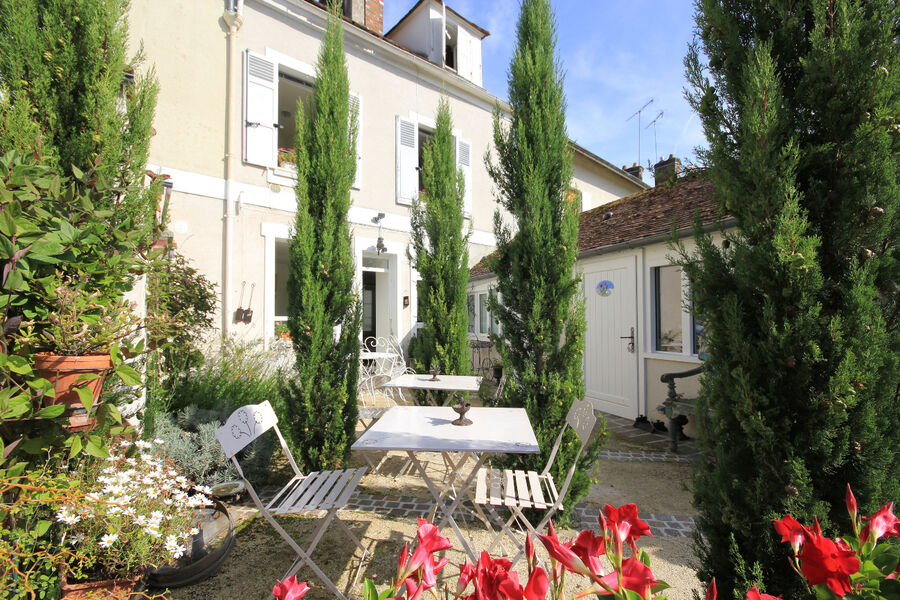 En plus des chambres à la décoration soignée, vous profiterez d'une cuisine aménagée, de la cour arborée, et du jardin fleuri bordé par la Voulzie, avec une vue imprenable sur la cité médiévale.